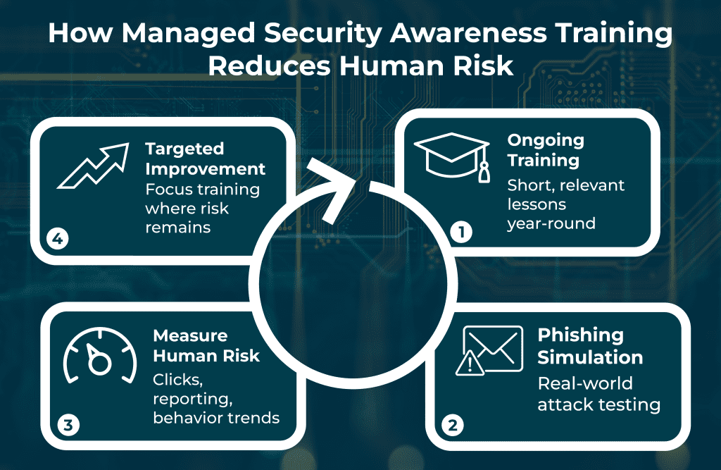 Managed Security Awareness Training changes that equation by shifting training from a checkbox activity to an ongoing defense strategy.