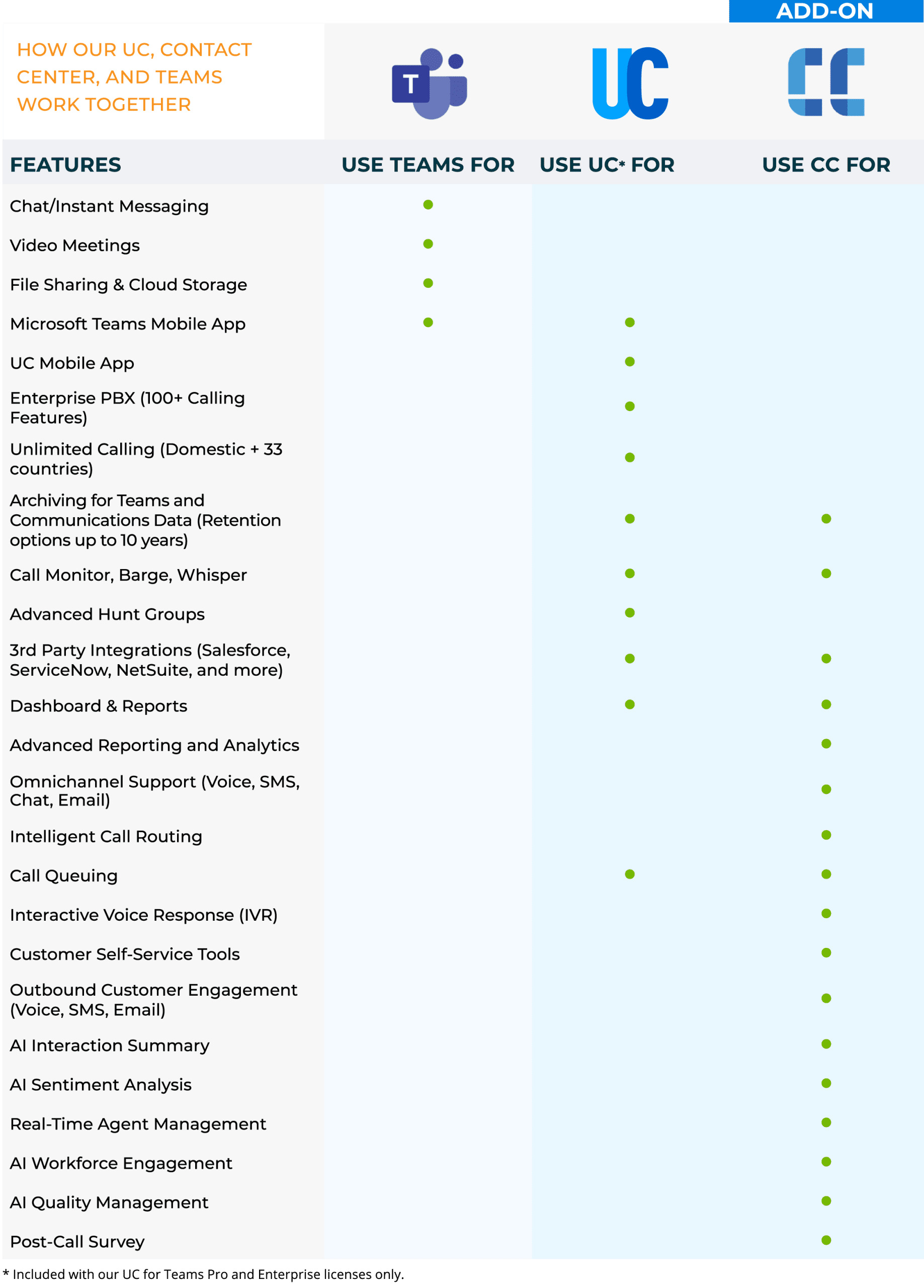- Teams-Integrated UC + CC in a single application